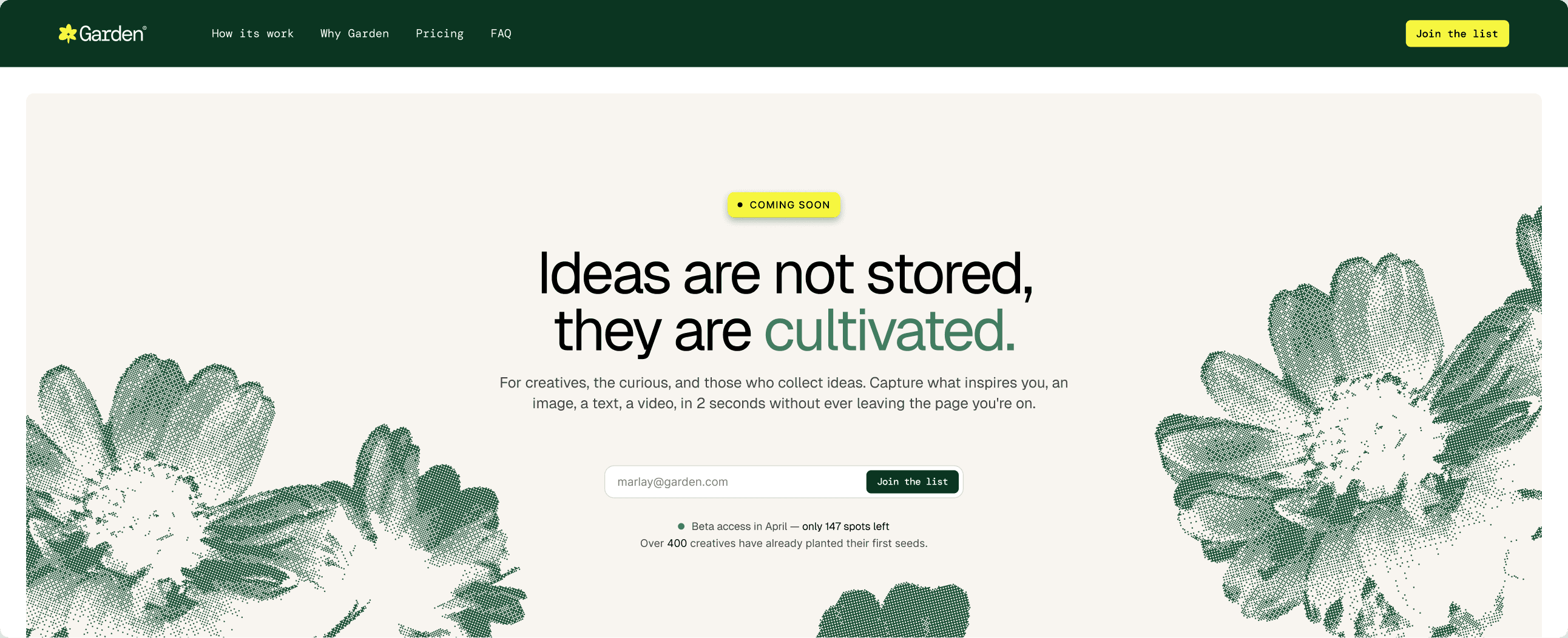 Designed the branding, website and product interface for Garden — a personal space where ideas find their roots, a calm place to collect, revisit, and nurture what inspires you.