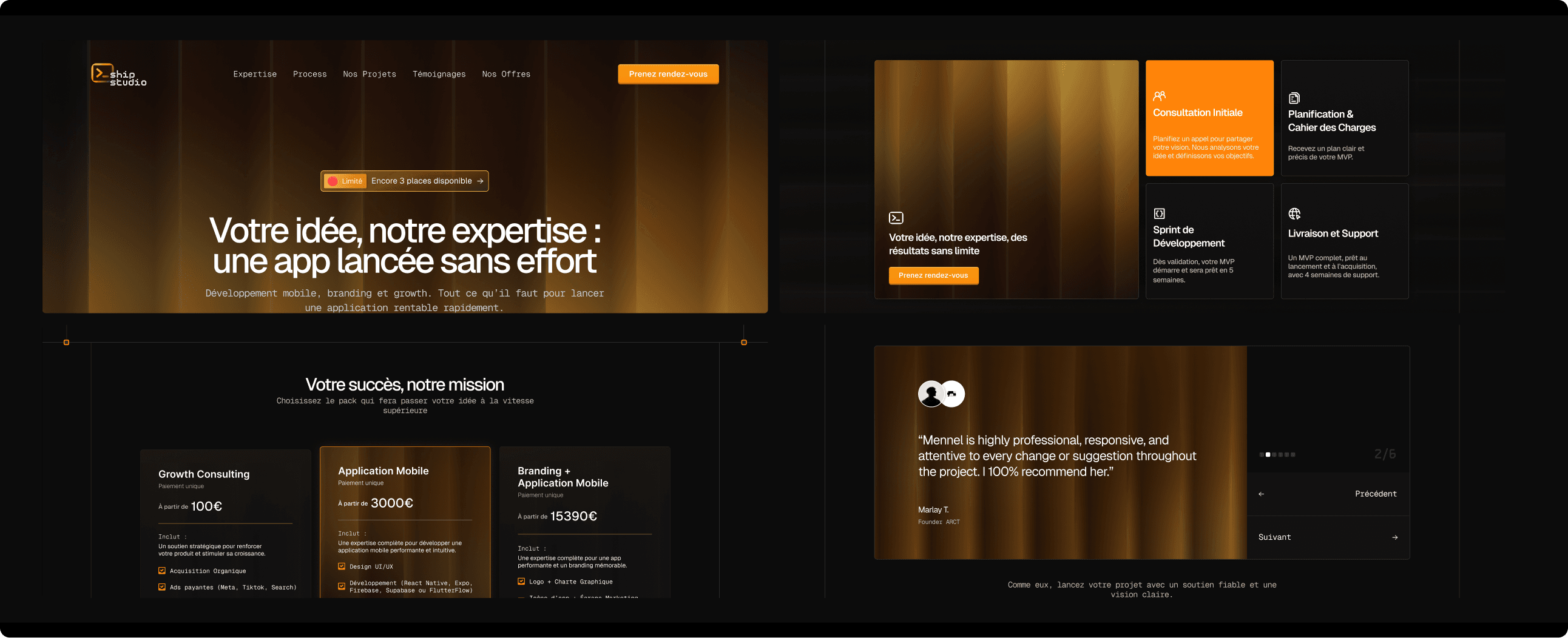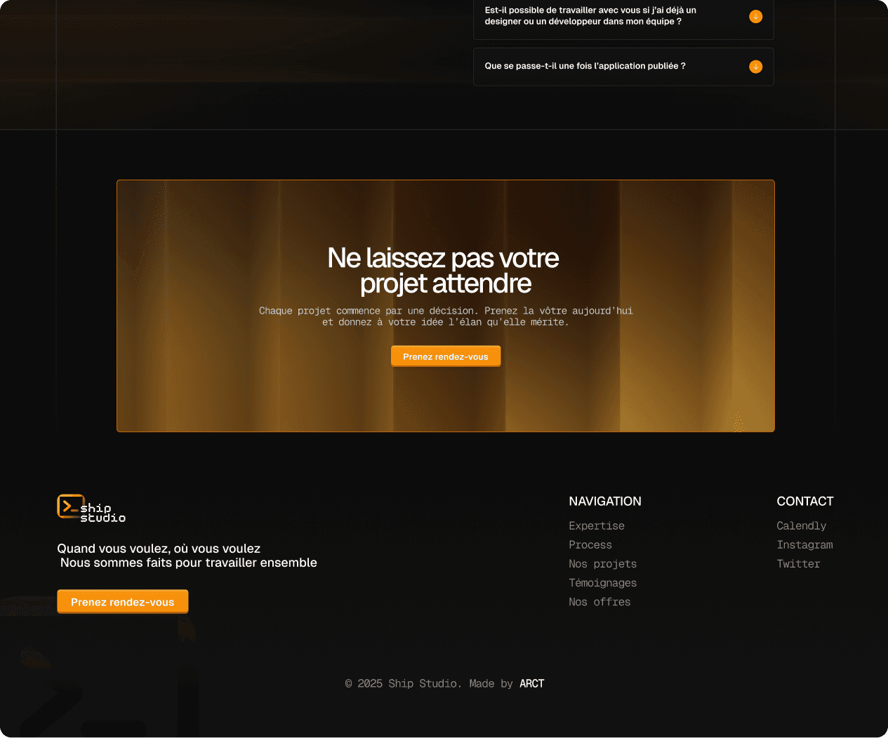 Redesigned the website for Ship Studio to elevate perceived value and modernity — a studio that designs and develops mobile apps where functionality, design and UX converge.